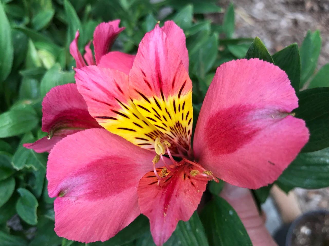Attributes: Deciduous. Dwarf Alstroemeria with large coral flwoers with white margins.