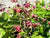Attributes: Deciduous. Clumping. Green leaves with crimson veining. Umbels of pale pink flowers.