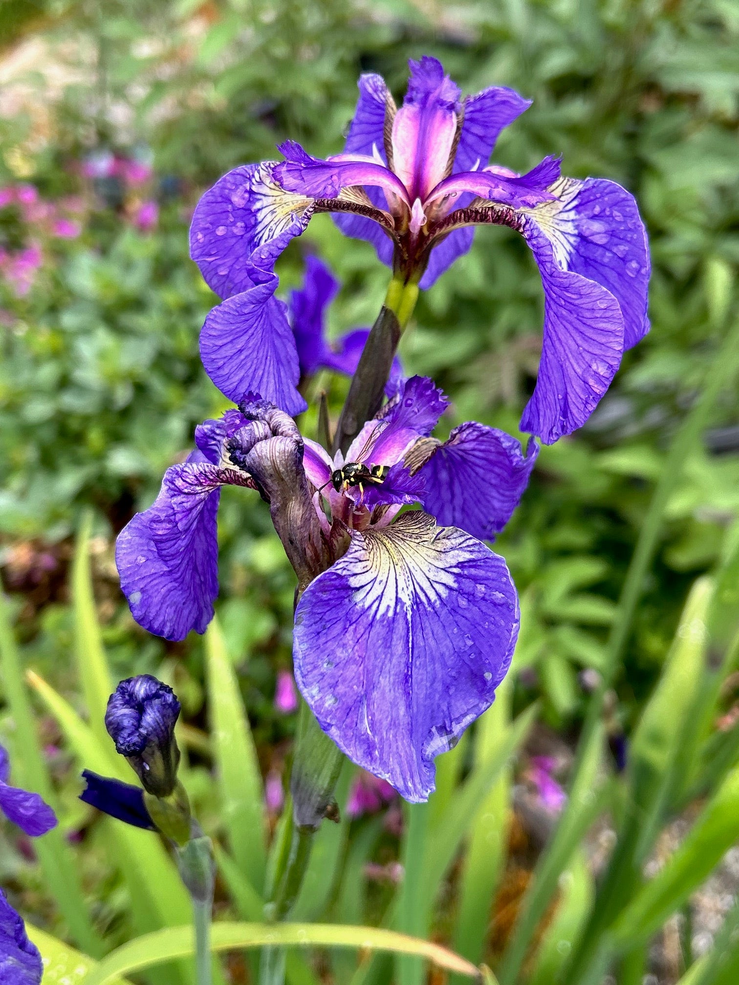 Attributes: Deciduous, blue-green grass like foliage. Pale blue to lavender to white flowers with purple veins.