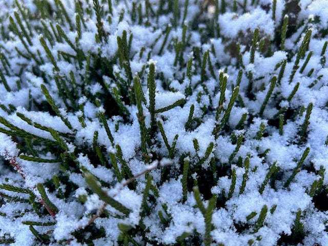 Attributes: Evergreen. Slow growing mounding shrub with foliage resembling spike moss or even conifers. White bell flowers on reddish stalks and sepals.