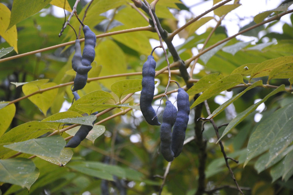 Attributes: Evergreen, Red and yellow blooms are formed on racemes. Blue fruit in the late fall. Leaves can vary in size and often have bright white underside of leaf.