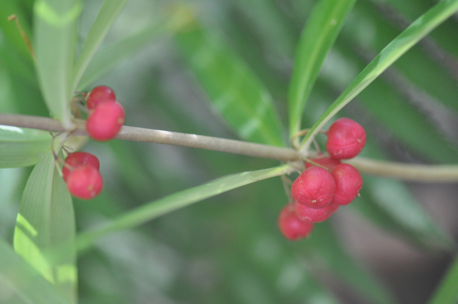 Attributes: Deciduous vine. Reddish orange mini-Magnolia-like flowers with dangling clusters of red fruit when pollinated.