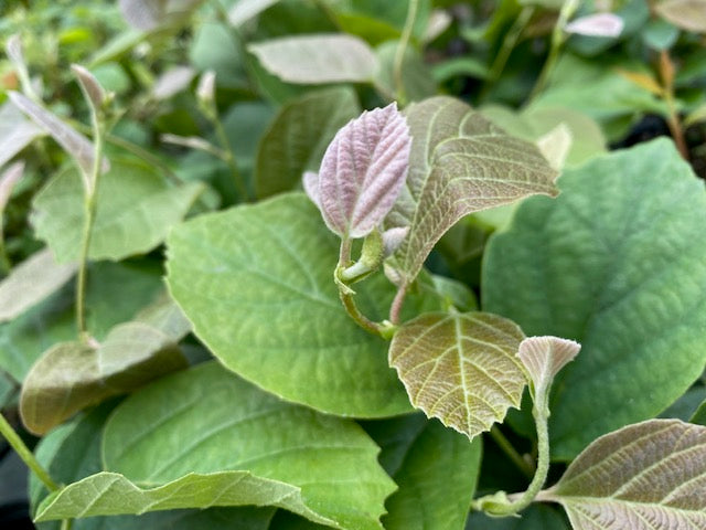 Attributes: Semi-evergreen small greenish flowers formed on the center of the leaf. Chocolate-purple new growth. Dark buds. Fed fruit. Glossy, narrow, serrated foliage. Multi-stemmed shrub. Separate male and female plants.