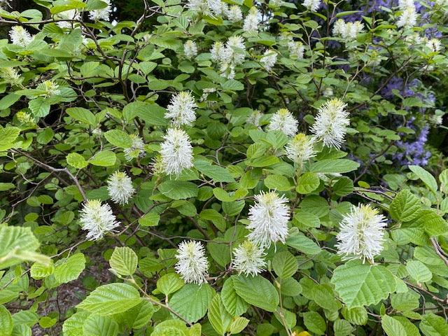 Attributes: Deciduous. Small growing selection with sweetly fragrant white flowers. Yellow, orange and red fall foliage. This selection has blue-green leaves.