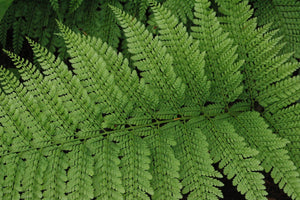 Attributes: Evergreen. Arching fronds with feathery texture, thick veins on the upper side of the frond.
